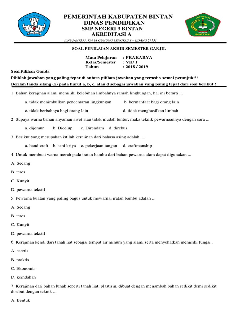 Soal Semester Prakarya Kelas 7 Pdf