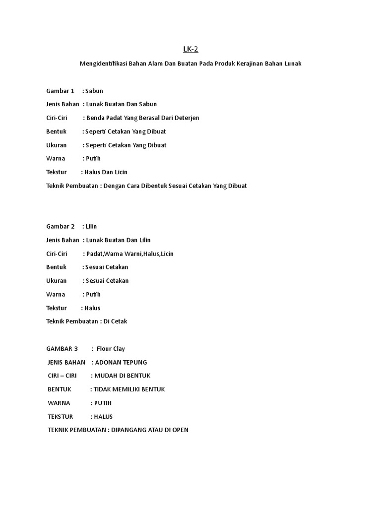 Baru Kerajinan Bahan Lunak Jenis Bahan Ciri Ciri Bentuk Ukuran Warna Tekstur Teknik Pembuatan Konsep Pentingjenis bahan ciri ciri bentuk ukuran warna tekstur teknik pembuatan tanah liat identifikasikan jenis kerajinan bahan lunak buatan ciri ciri bentuk ukuran warna tekstur teknik pembuatan sabun 10 bahan alam dan buatan pada produk kerajinan bahan lunak 10 contoh mengidentifikasi bahan. Kerajinan Bahan Lunak Jenis Ciri-Ciri Bentuk Ukuran Warna Tektur Teknik Bahan Pembuatan. Kerajinan Bahan Lunak Jenis Ciri-Ciri Bentuk Ukuran Warna Tektur Teknik Bahan Pembuatan Tambahkan dari benda kerajinan bahan lunak lainnya.