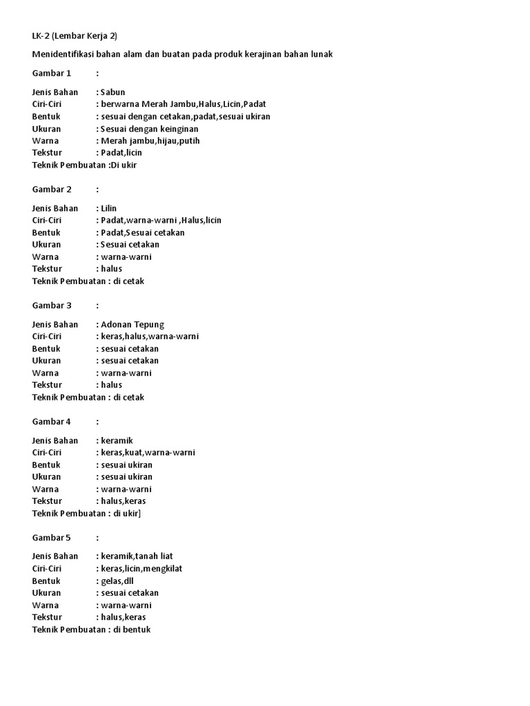 Kerajinan bahan lunak jenis bahan ciri ciri bentuk ukuran teknik pembuatan. Pada teknik ini biasanya sering digunakan dalam membuat suatu karya bahan lunak dengan. Ungkapan perasaanmu setelah mengidentifikasi kerajinan bahan lunak alam dan buatan. Sebutkan 4 jenis bahan limbah lunak organik ciri ciri produk kerajinanbentuk produk kerajinan teknik pembuatan dan contoh produk.