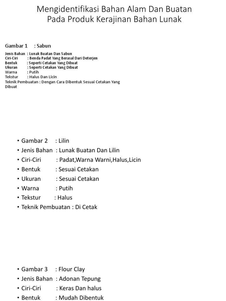 Mengidentifikasi Bahan Alam Dan Buatab Pada Produk Kerajinan Bahan Lunak Tentukan Jenis Bahan Brainly Co Id