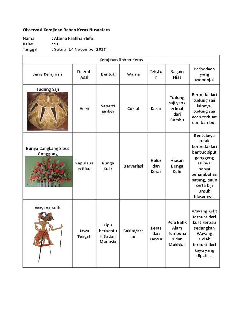 Prakarya Observasi Kerajinan Bahan Keras Nusantara Pdf